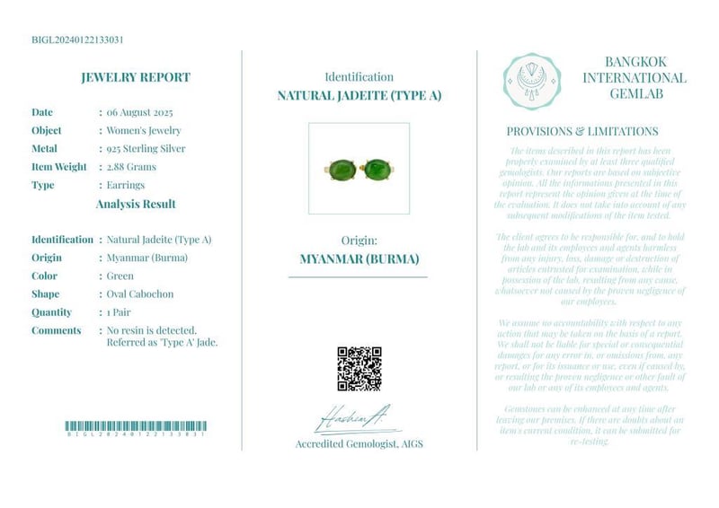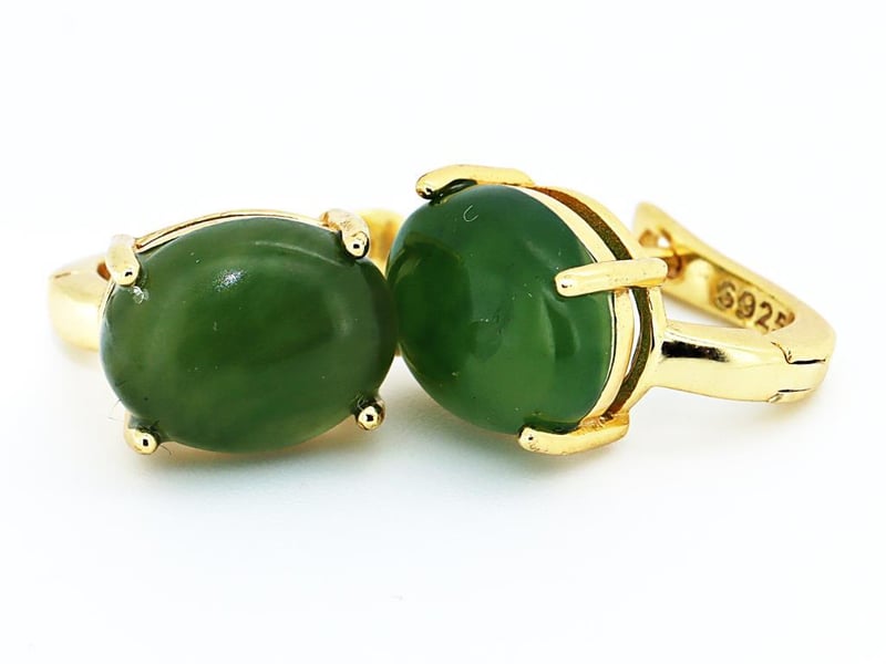 NATURAL BURMESE JADE EARRINGS ON 925 SILVER - WITH CERTIFICATE