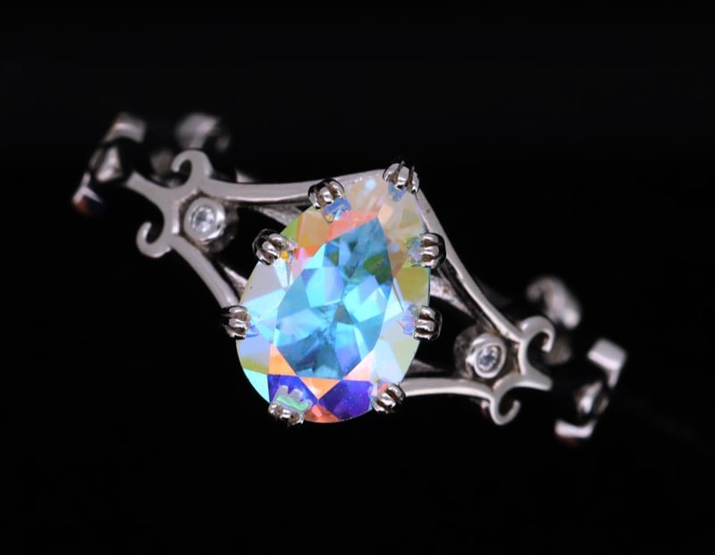 Comments : Main Stone (Topaz) Has Been Color Treated With An Iridescent, Rainbow- Like Sheen.