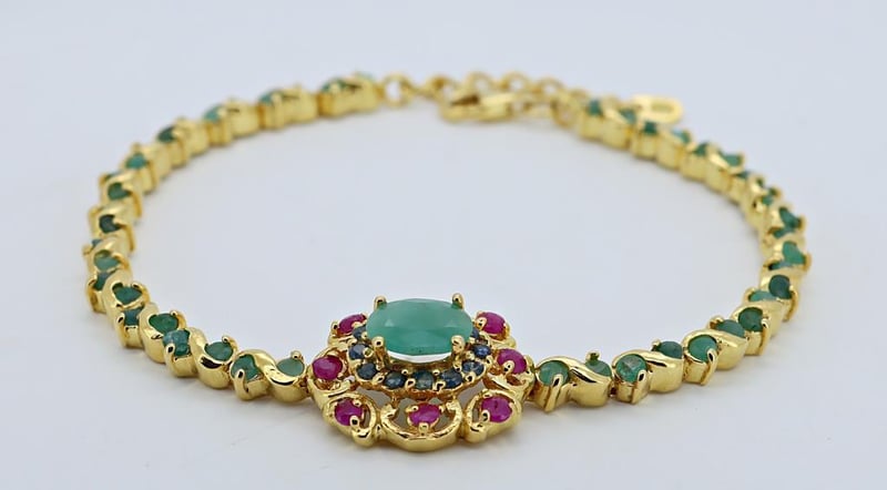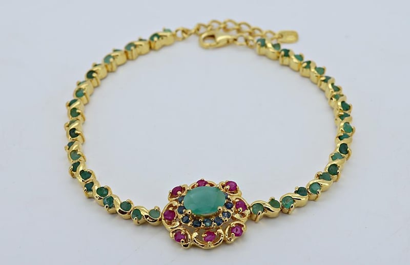NATURAL ZAMBIAN EMERALD, RUBY & SRI LANKAN SAPPHIRE (UNTREATED) BRACELET ON 925 SILVER - WITH CERTIFICATE
