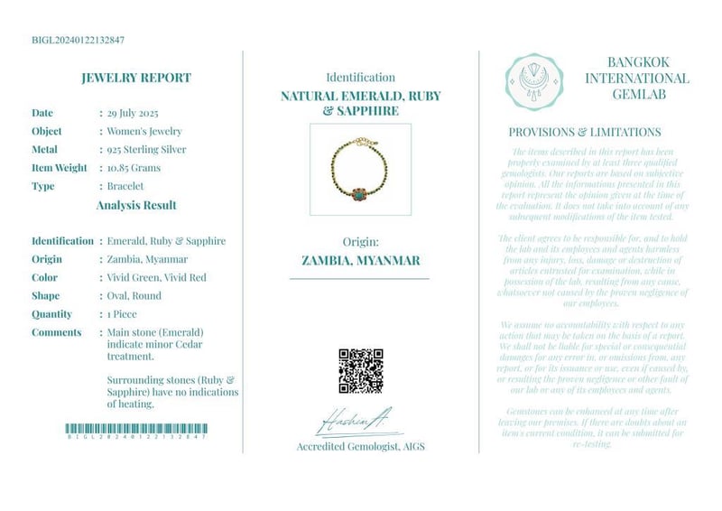 Comments : Main Stone (Emerald) Indicate Minor Cedar Treatment.