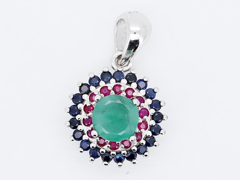 NATURAL EMERALD, RUBY SRI LANKAN SAPPHIRE (UNTREATED) PENDANT ON 925 SILVER - WITH CERTIFICATE