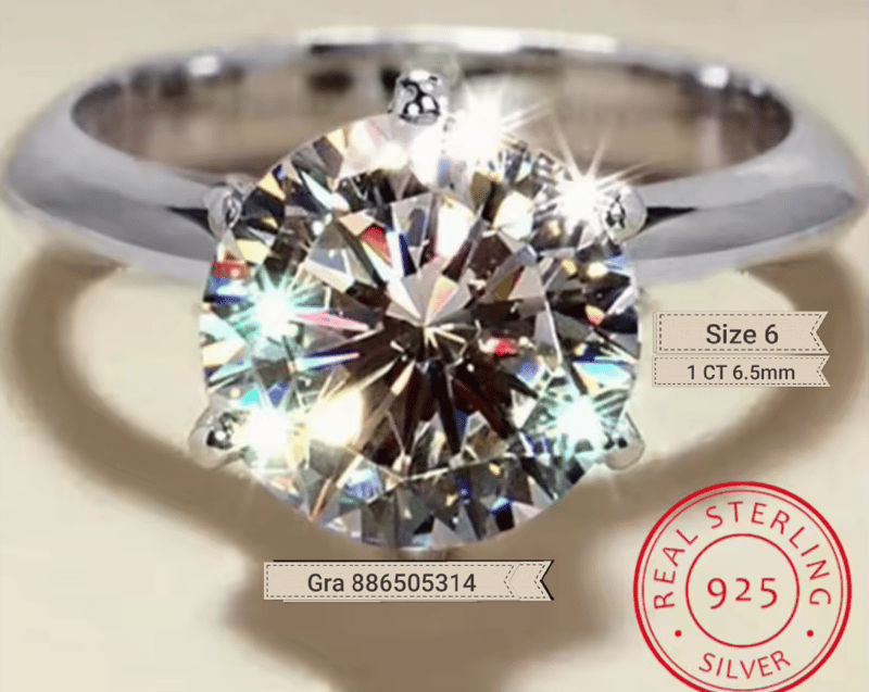 GRA CERTIFIED 925 SILVER 1 CT MOISSANITE ENGAGEMENT RING SIZE 6