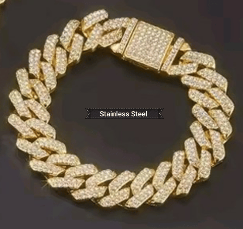 GOLD STAINLESS STEEL CUBAN LINK BRACELET WITH ZIRCONS Condition: Good - Refer Images 0162996+20FC