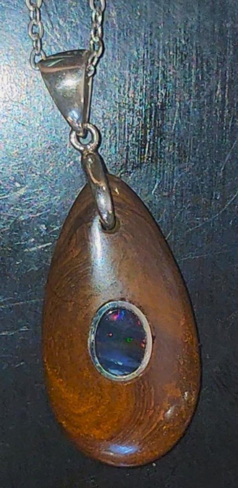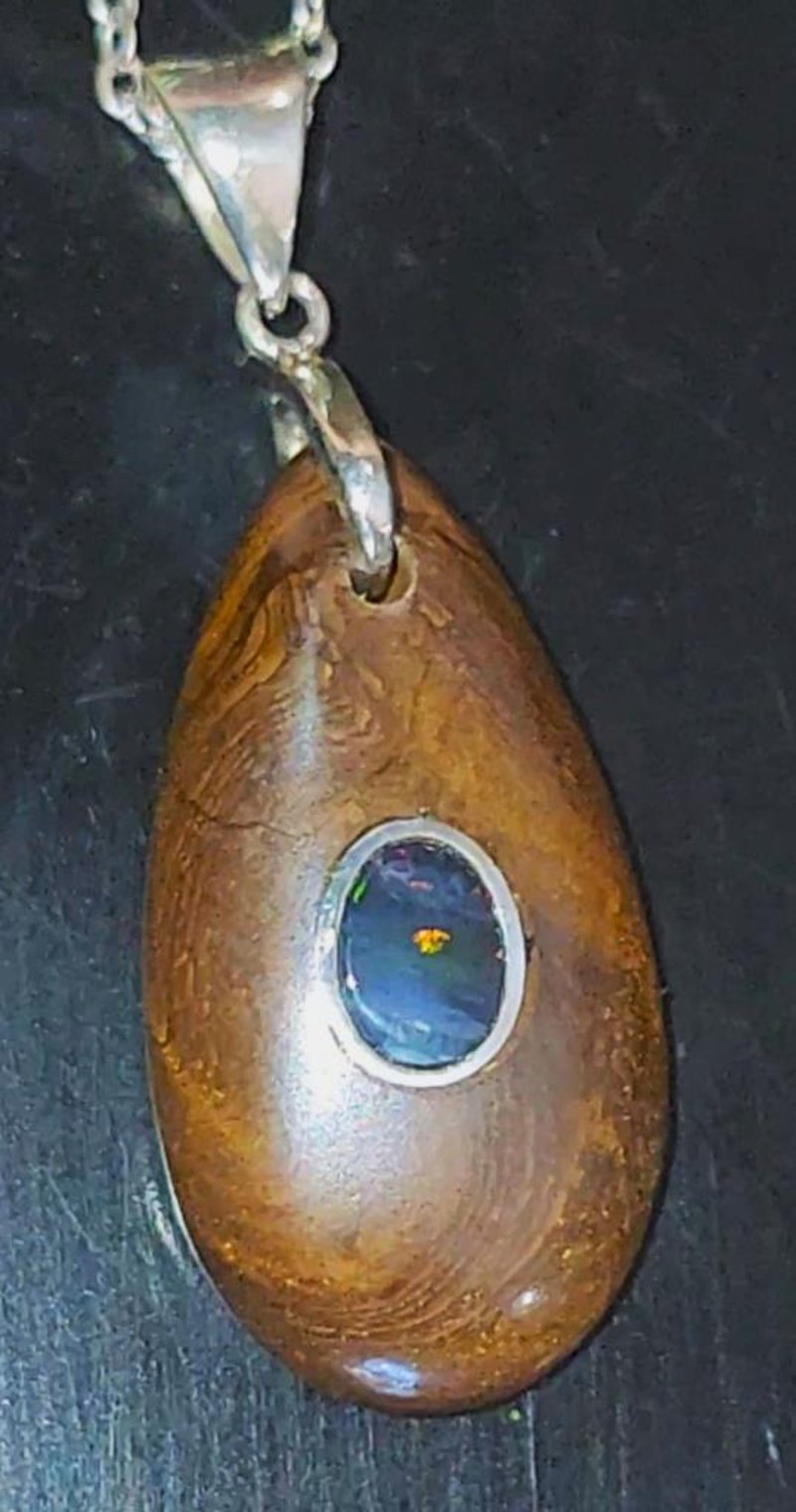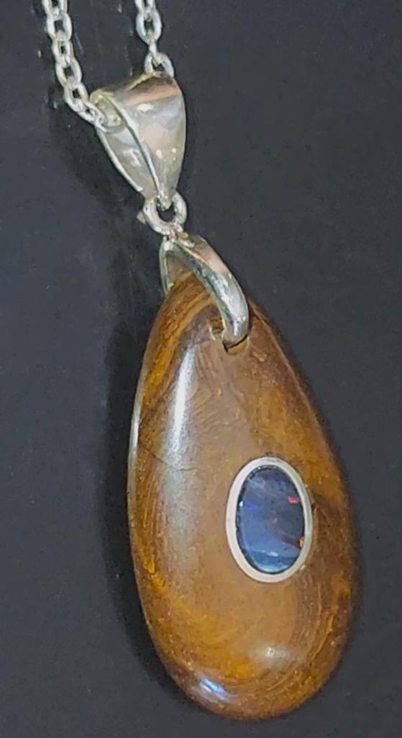 27 TCW WINTON AND LIGHTNING RIDGE INLAID BOULDER OPAL WITH A SILVER CHAIN