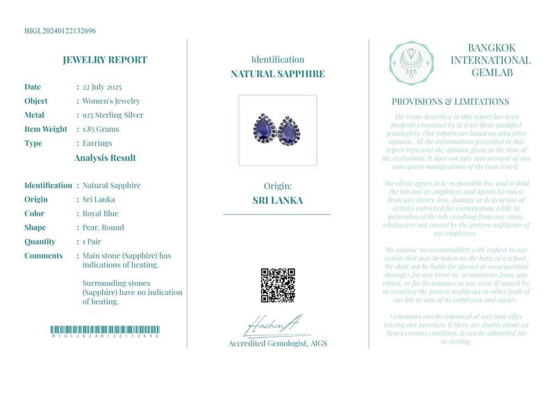 NATURAL SRI LANKAN SAPPHIRE EARRINGS ON 925 SILVER - WITH CERTIFICATE