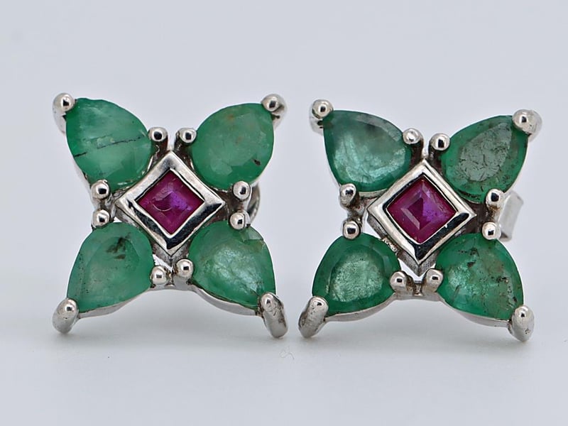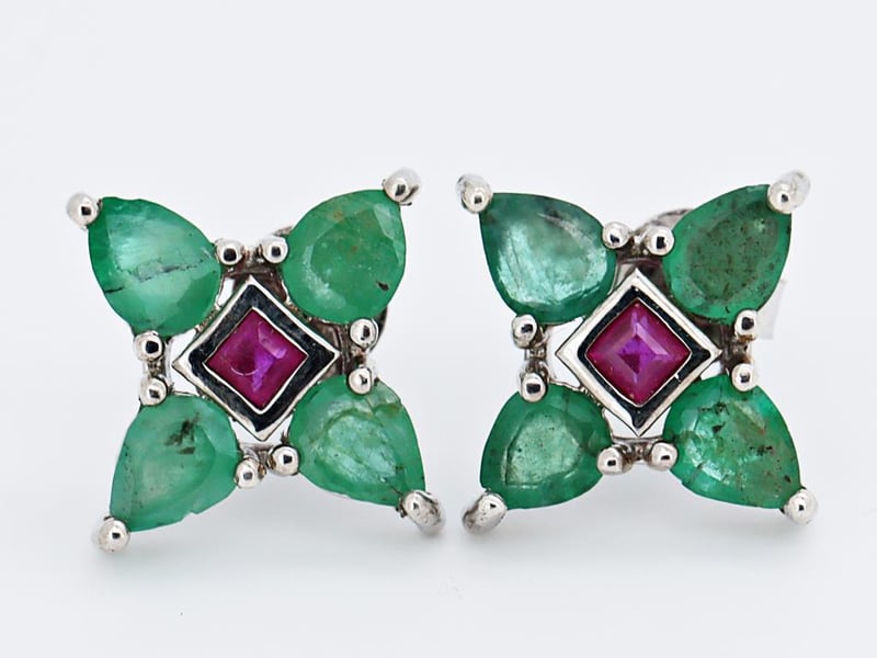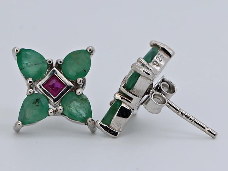 NATURAL ZAMBIAN EMERALD & BURMESE RUBY (UNHEATED) EARRINGS ON 925 SILVER - WITH CERTIFICATE