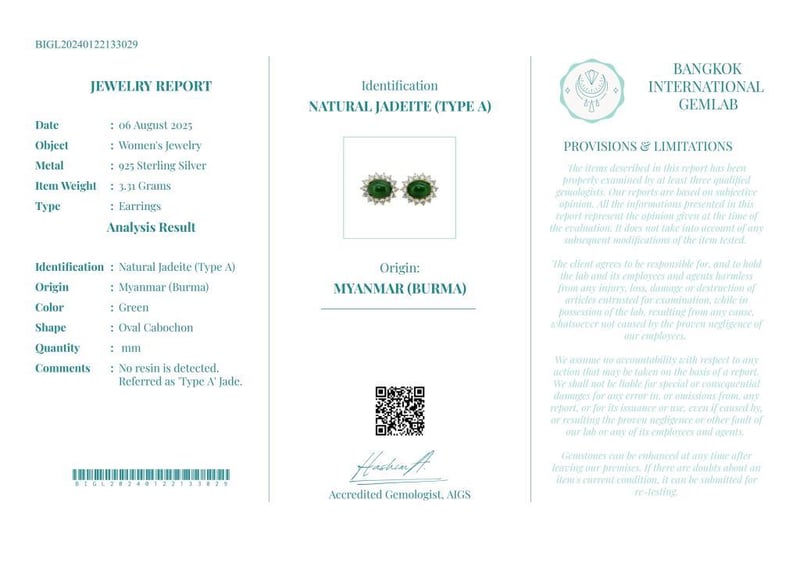 NATURAL BURMESE JADE EARRINGS ON 925 SILVER - WITH CERTIFICATE