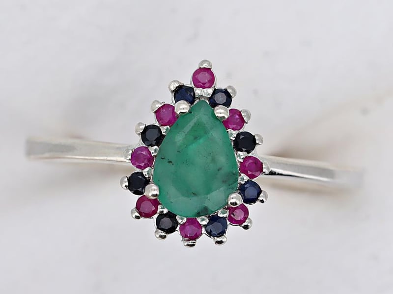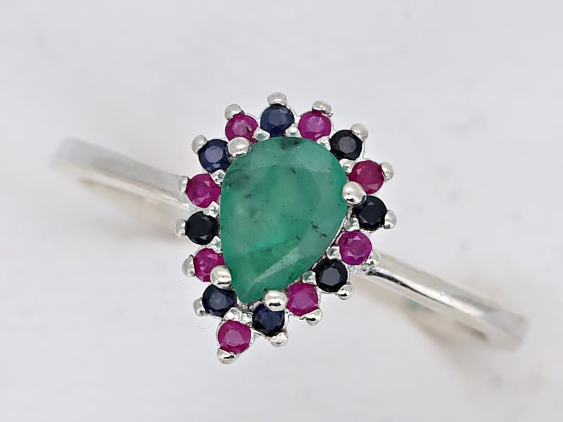 NATURAL EMERALD, RUBY SRI LANKAN SAPPHIRE (UNTREATED) RING ON 925 SILVER - WITH CERTIFICATE