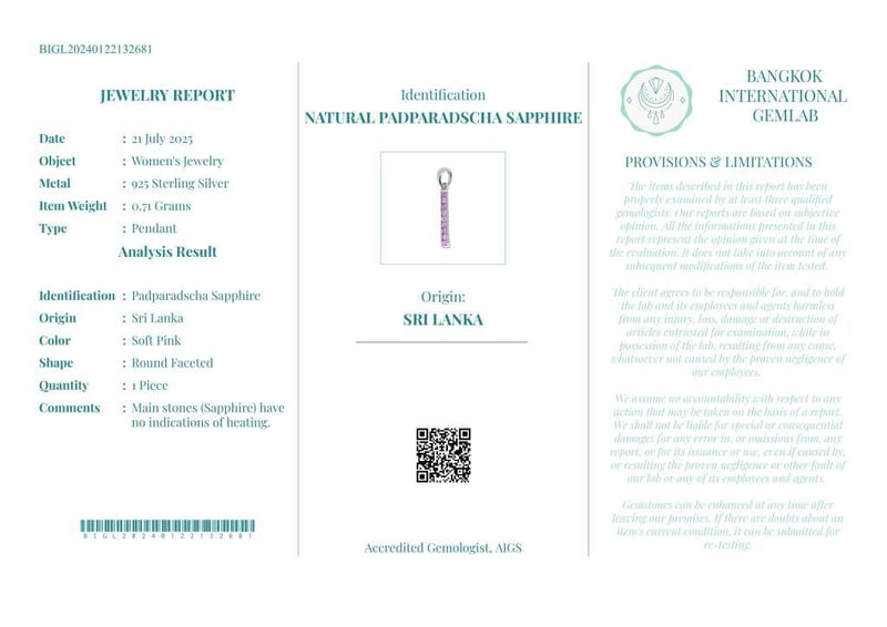 NATURAL PADPARADSCHA SAPPHIRE (UNHEATED) PENDANT ON 925 SILVER - WITH CERTIFICATE