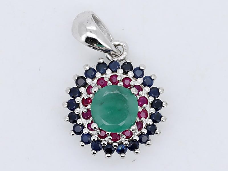 NATURAL EMERALD, RUBY SRI LANKAN SAPPHIRE (UNTREATED) PENDANT ON 925 SILVER - WITH CERTIFICATE