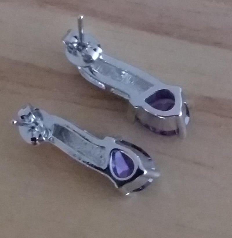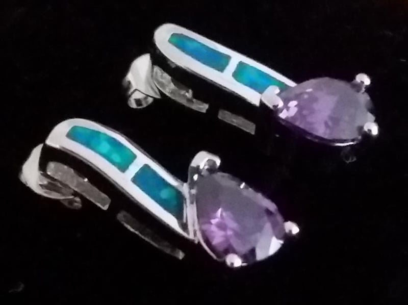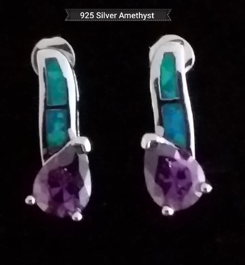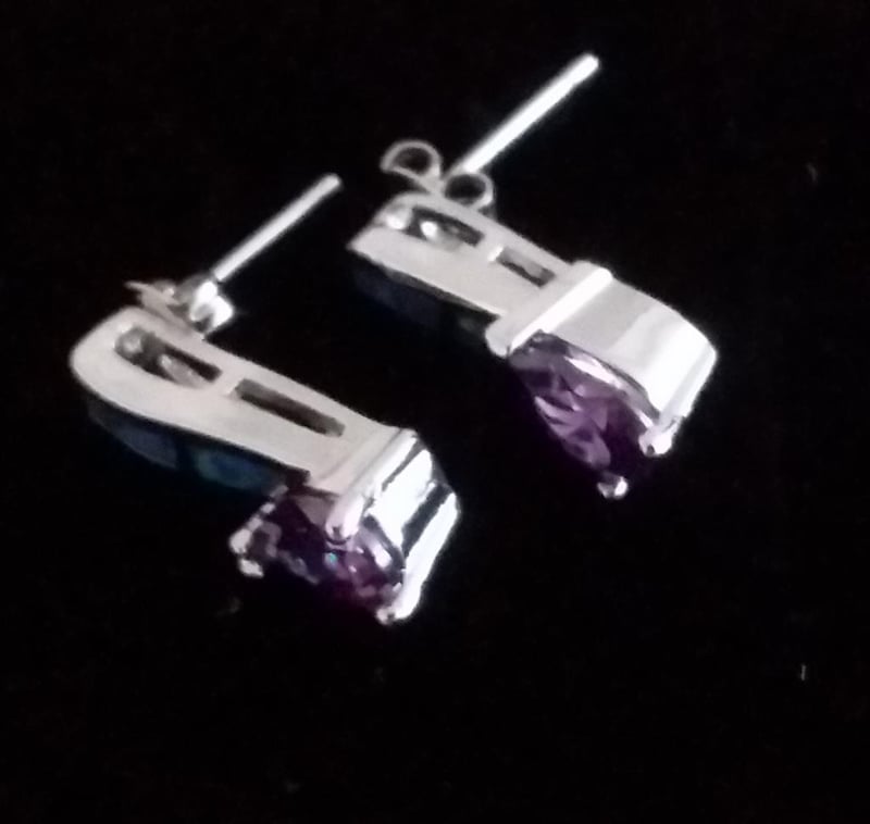 925 SILVER BLUE LAB CREATED FIRE OPAL AND AMETHYST STUD EARRINGS