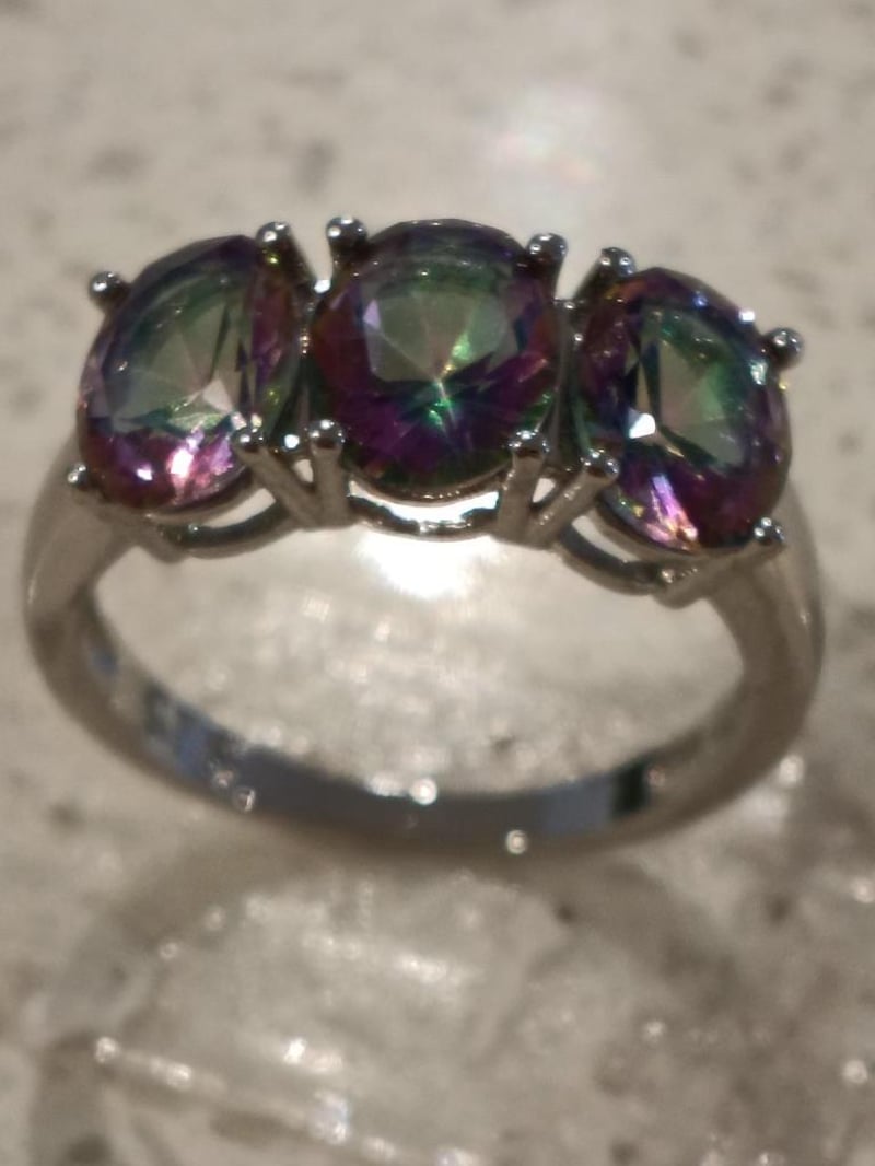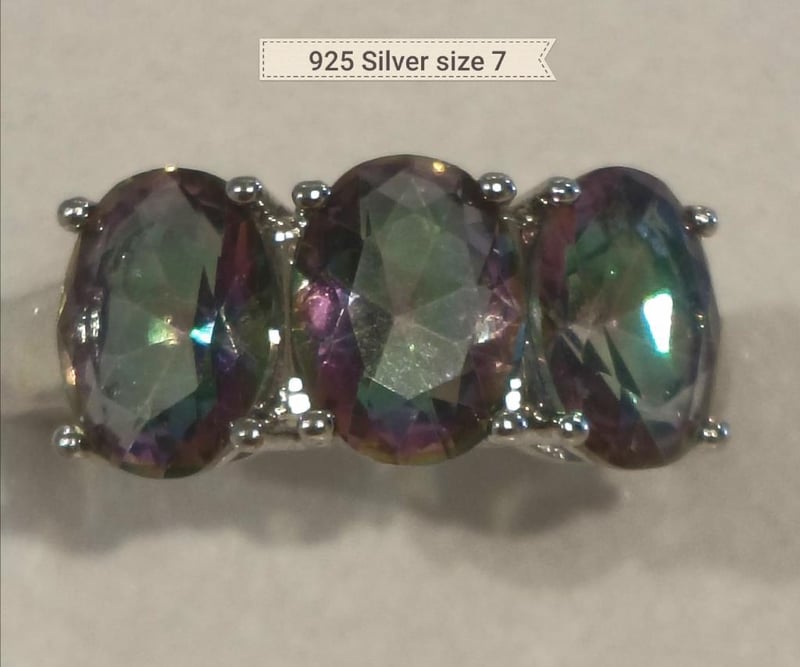 925 SILVER 3 MYSTIC RAINBOW TOPAZ STONES RING