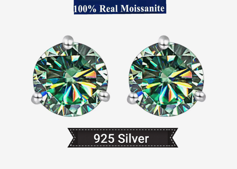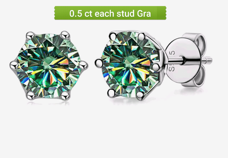 GRA CERTIFIED MOISSANITE BLUE GREEN 925 SILVER STUD EARRINGS