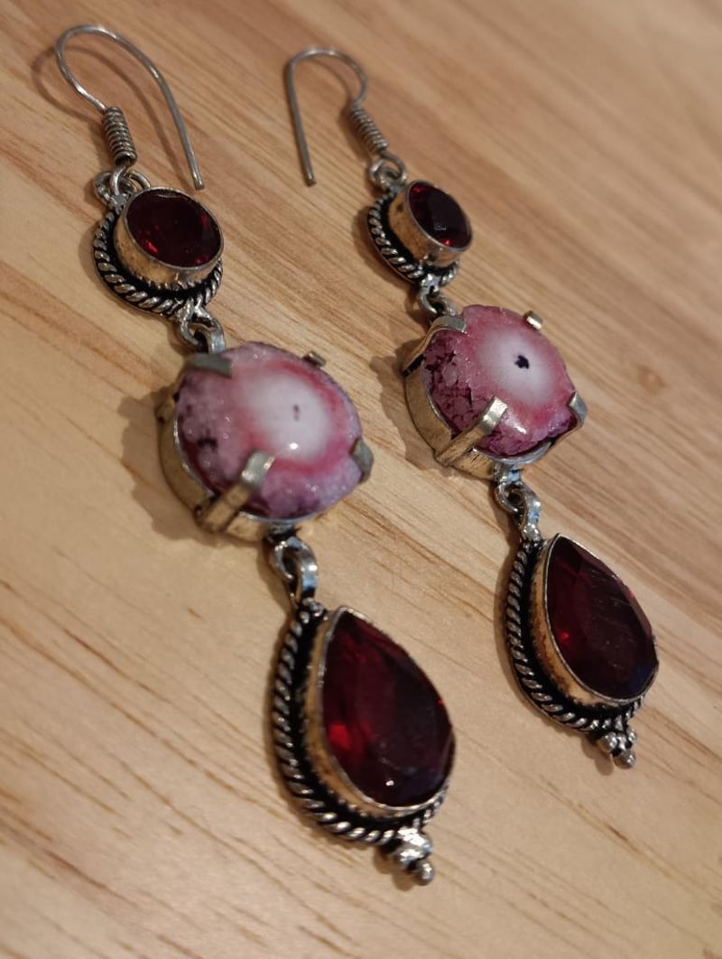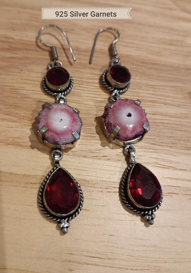 925 SILVER GARNET LONG DROP EARRINGS