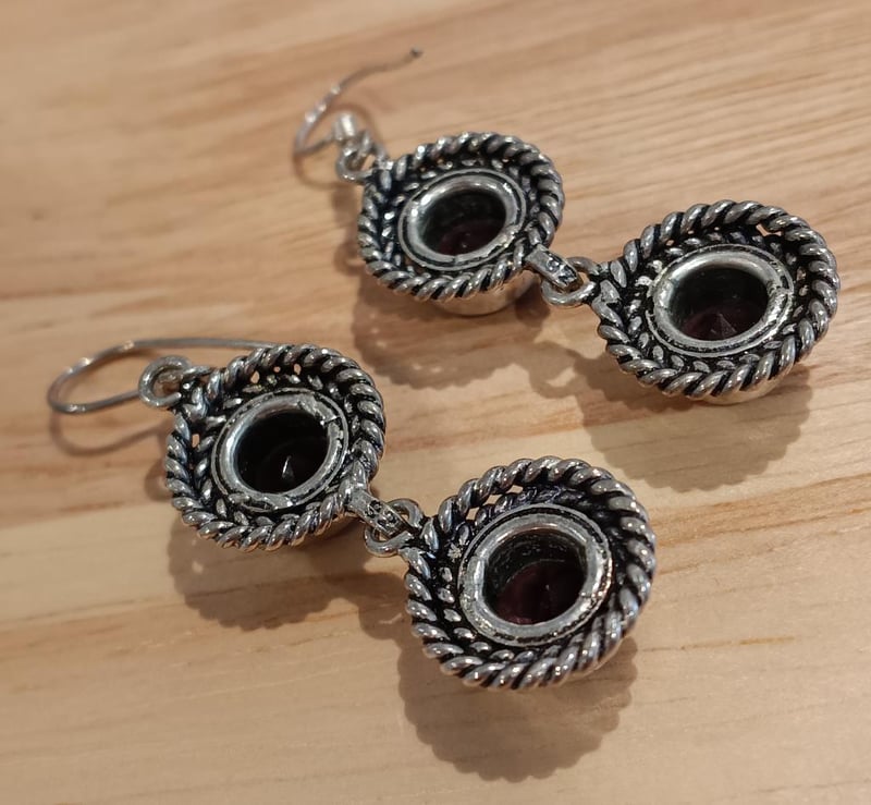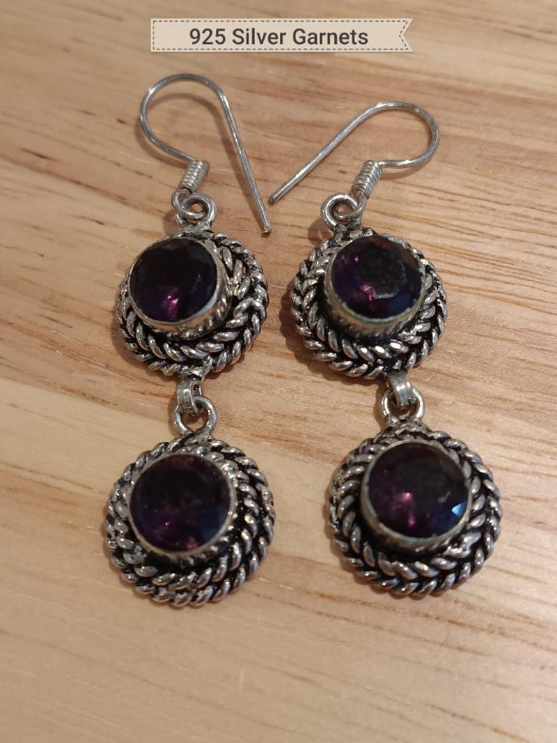 925 SILVER VINTAGE STYLE AMETHYST DROP EARRINGS