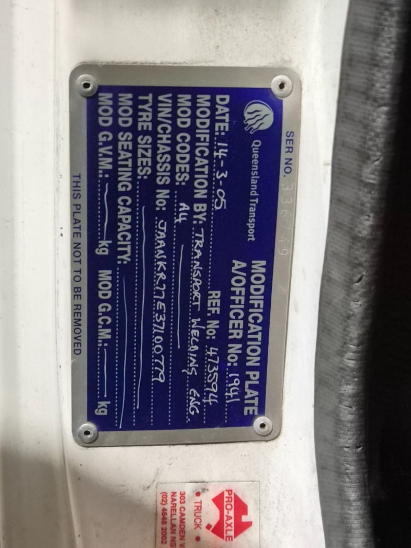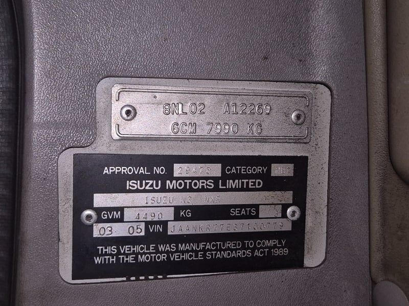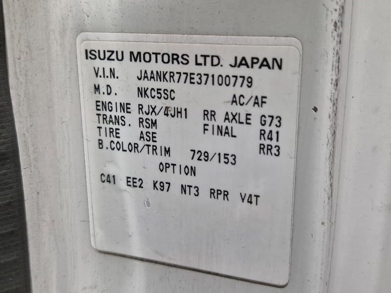 2005 Isuzu N3 NKR Year: 2005Make: IsuzuModel: N3 NKROdometer: 337268Body: Single FlatbedDrive type: Rear Wheel DriveFuel: DieselAspiration: Single TurboColour: WhiteEngine: 4.6L I4Transmission: 5spd ManualTray Dimensions W: 2002mm, L: 3300mmVIN: JAANKR77E37100779Note: Pallet on Tray not Included
