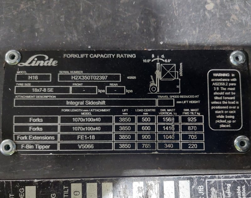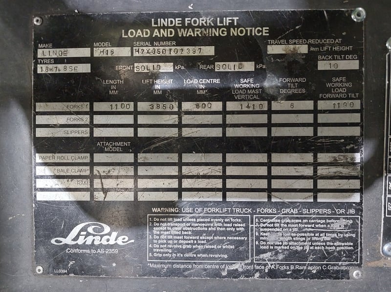 Descriptio/Extras: Solid Tyres, Work Lights, Side Shift, Safety Scales, Manual Adjustment Tines