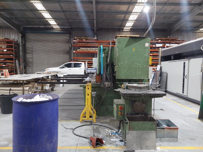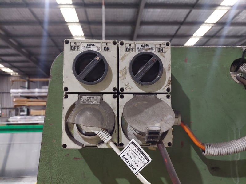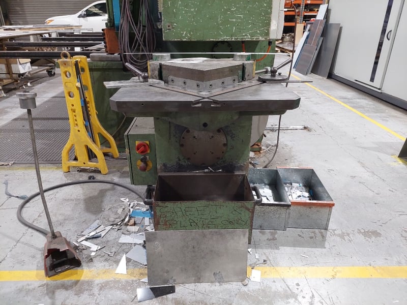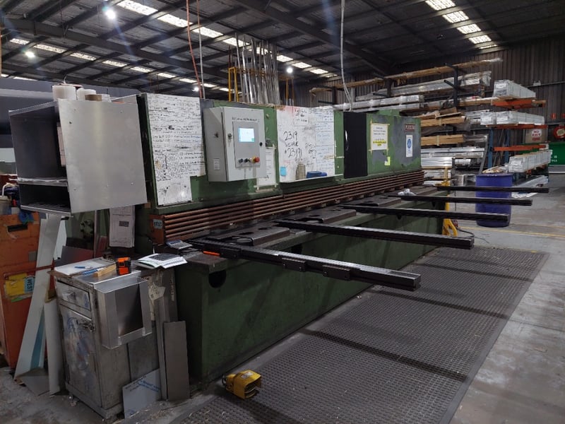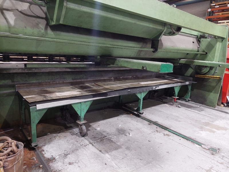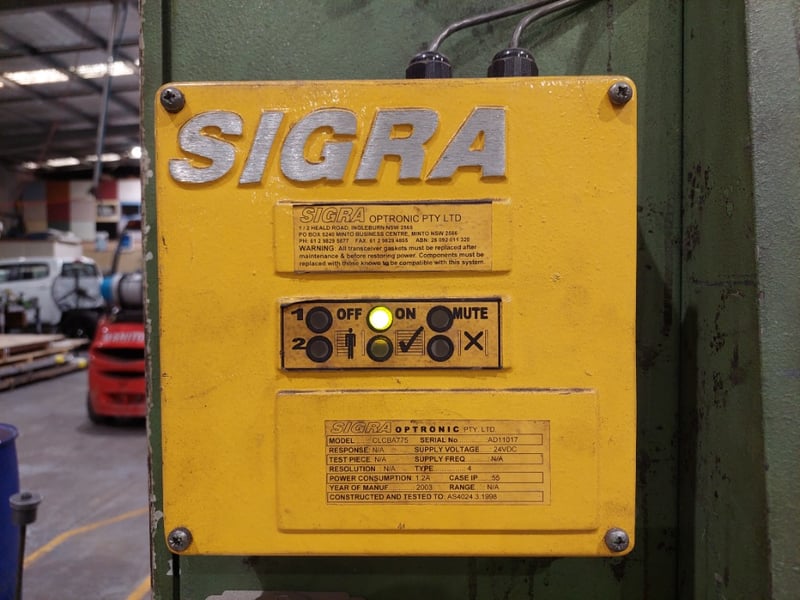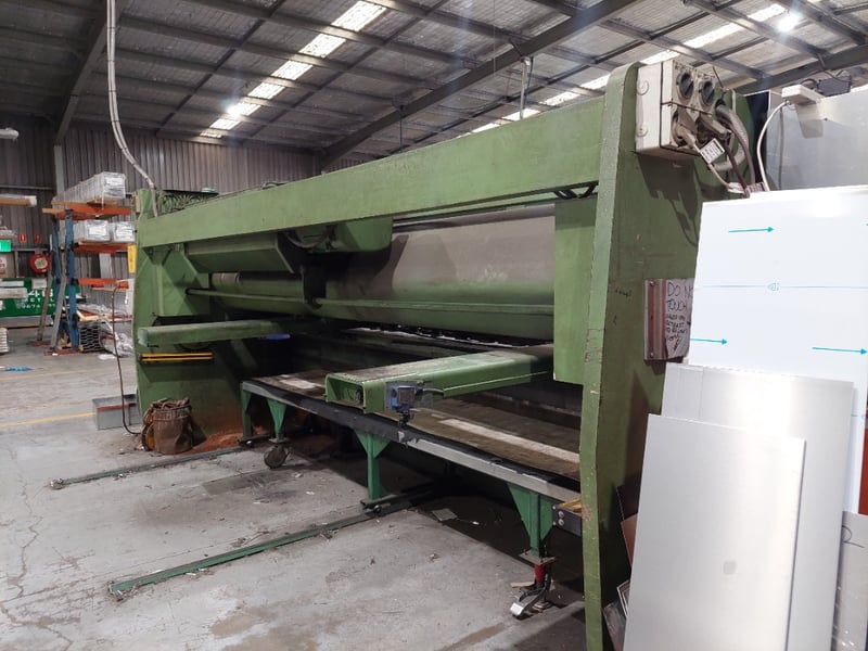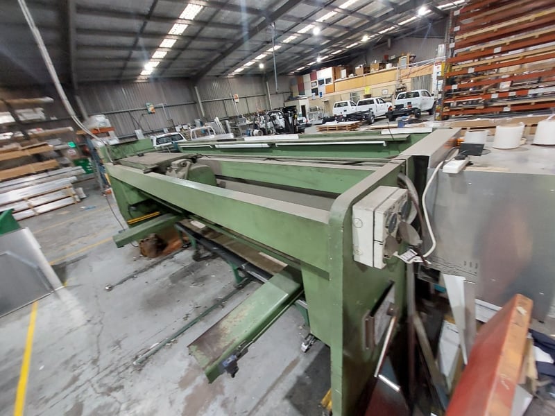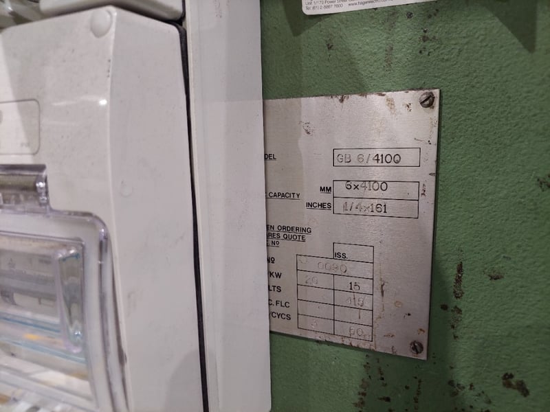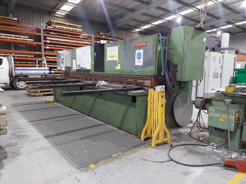 Green sigra pearson hydraulic power squaring shear Machine.mm: 6x4100 Serial No unsighted due to plate behind power supply - REFER TO PHOTOSmachine precisely cuts or "shears" flat stock material, such as sheet metal or plate, into smaller pieces. Note: Must take all