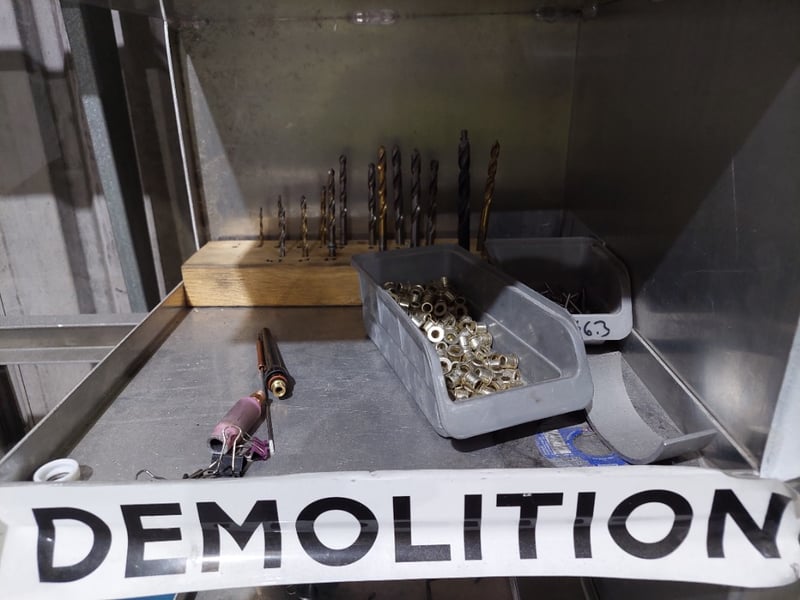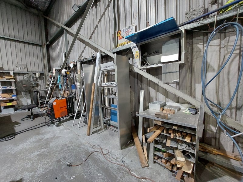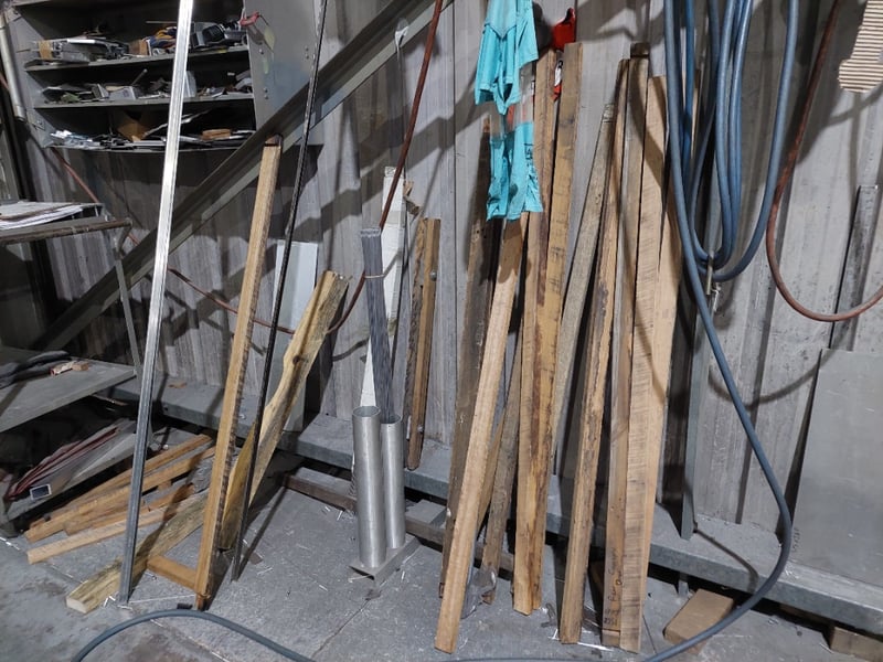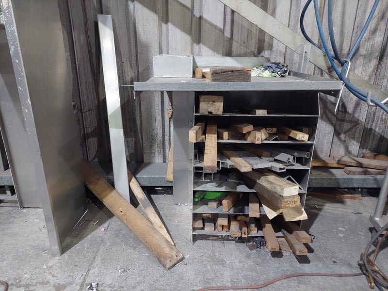 Assortment of steel equipment.Includes steel pieces/parts, drill bits, timber & More.. REFER TO PHOTOS note: orange Compressor not included, everything else must go