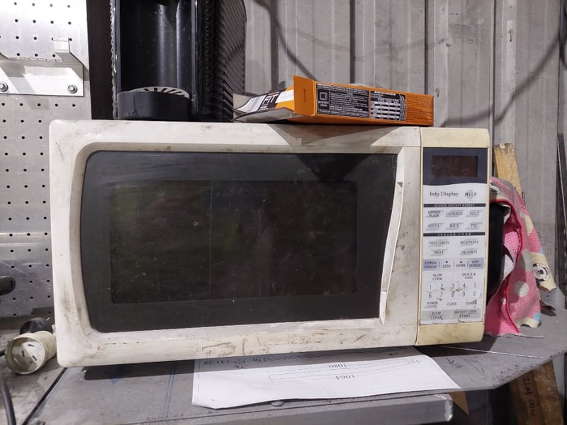 Includes microwave, sandwich presser, Steel pieces, tool shelves & many more...
