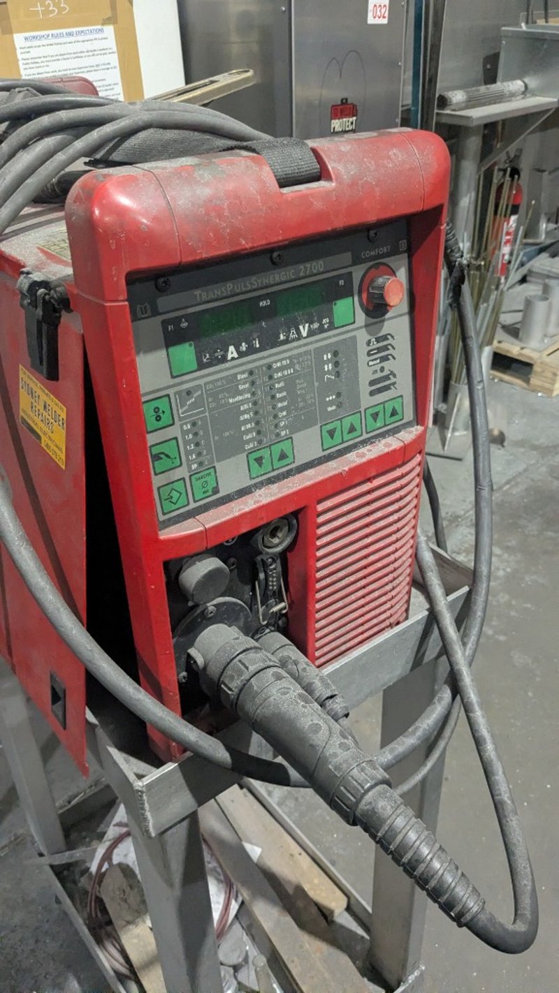 Description/Extras: Capable of MIG/MAG, Includes Moving Metal Trolley, 3 Phase Power
