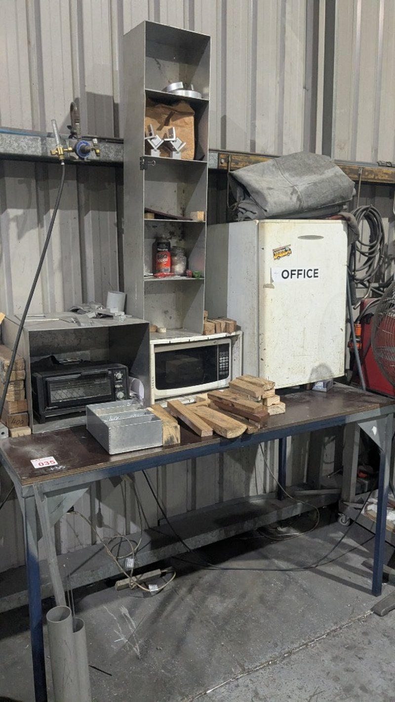 Industrial Workshop Bundle, Includes Metal Frame Timber Laminated Top Desk, Bar Fridge, Microwave, Toast n Grill and more Dimensions: 1700mm(W) x 800mm(D) x 1010mm(H) SOLD AS LOTNOTE: INSPECTIONS HIGHLY RECOMMENDED, BUYER TO PROVIDE OWN LABOUR AND TOOLS FOR SAFE REMOVAL OF ASSET