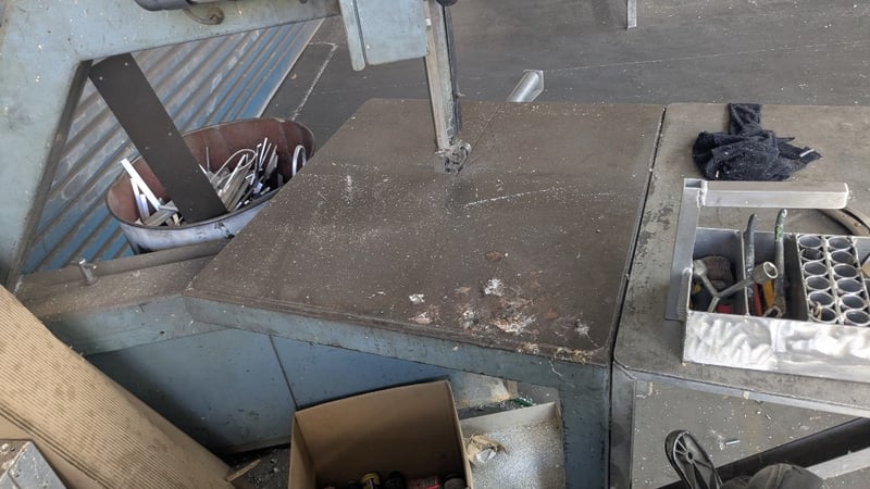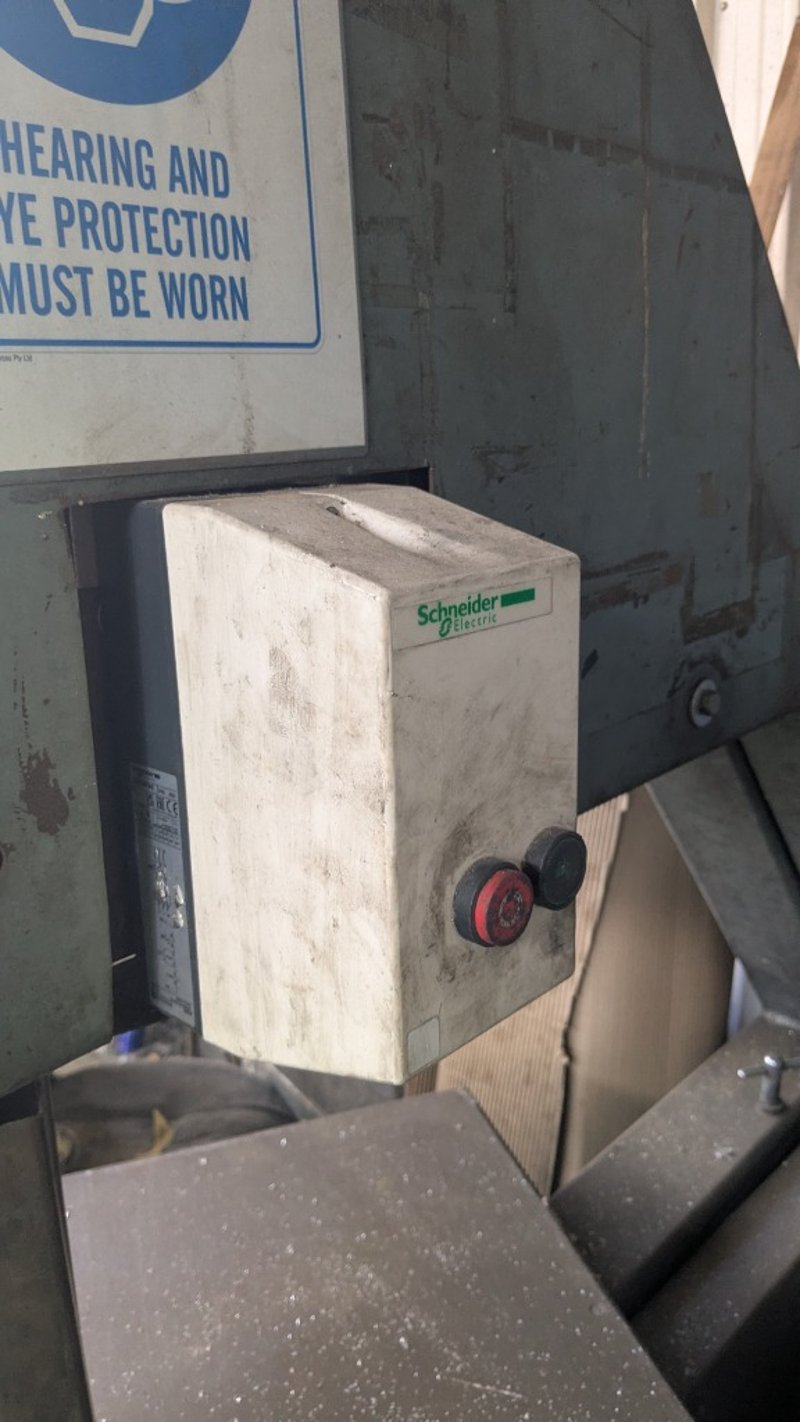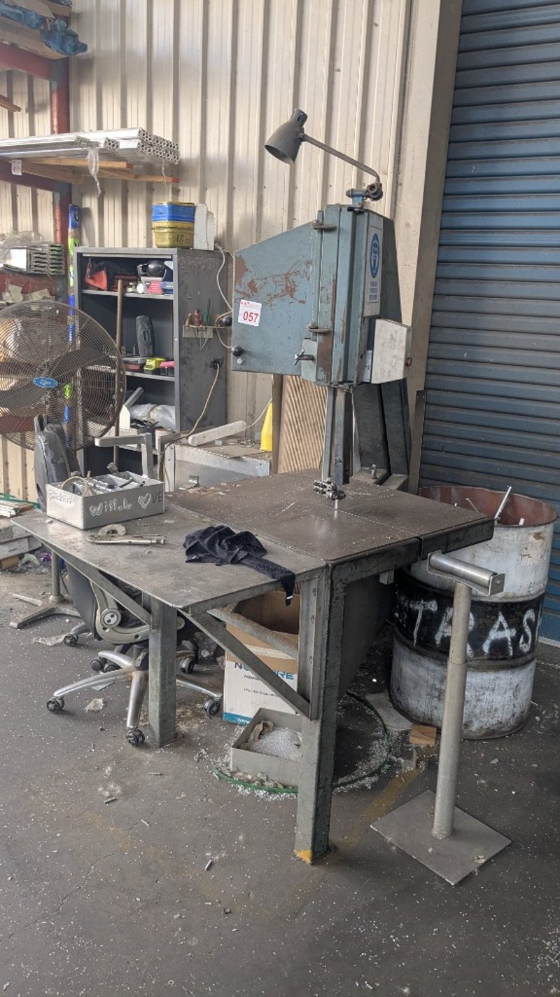 Vertical Band Saw, Push Button Control, Metal Construction, Includes Storage Rack with Drill Bits, Bolts and more