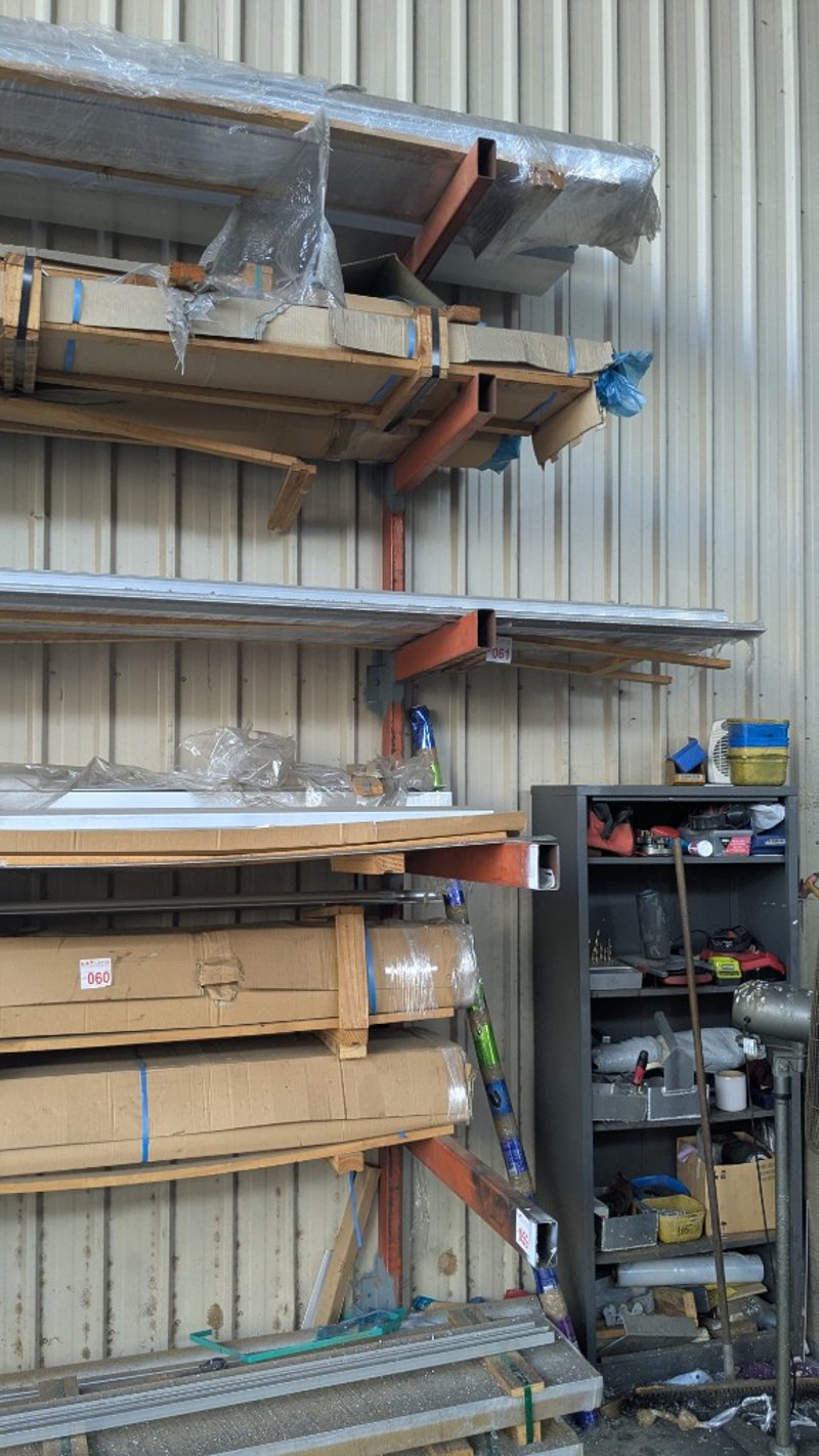 Cantilever Racking, 5 TierDimensions: 5950mm(W) x 1300mm(D) x 3500mm(H)nNOTE: CONTENTS NOT INCLUDED, BOLTED DOWN, INSPECTIONS HIGHLY RECOMMENDED, BUYER TO PROVIDE OWN LABOUR AND TOOLS FOR SAFE REMOVAL OF ASSET