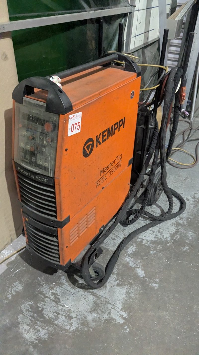 Kemppi MasterTig ACDC 3500W TIG welding machineBrand: Kemppi Model: MasterTig ACDC 3500WSerial no: 2664309Description/Extras: 3 Phase Power, Moving Trolley, Adjustable ModesNOTE: INSPECTIONS HIGHLY RECOMMENDED, BUYER TO PROVIDE OWN LABOUR AND TOOLS FOR SAFE REMOVAL OF ASSET
