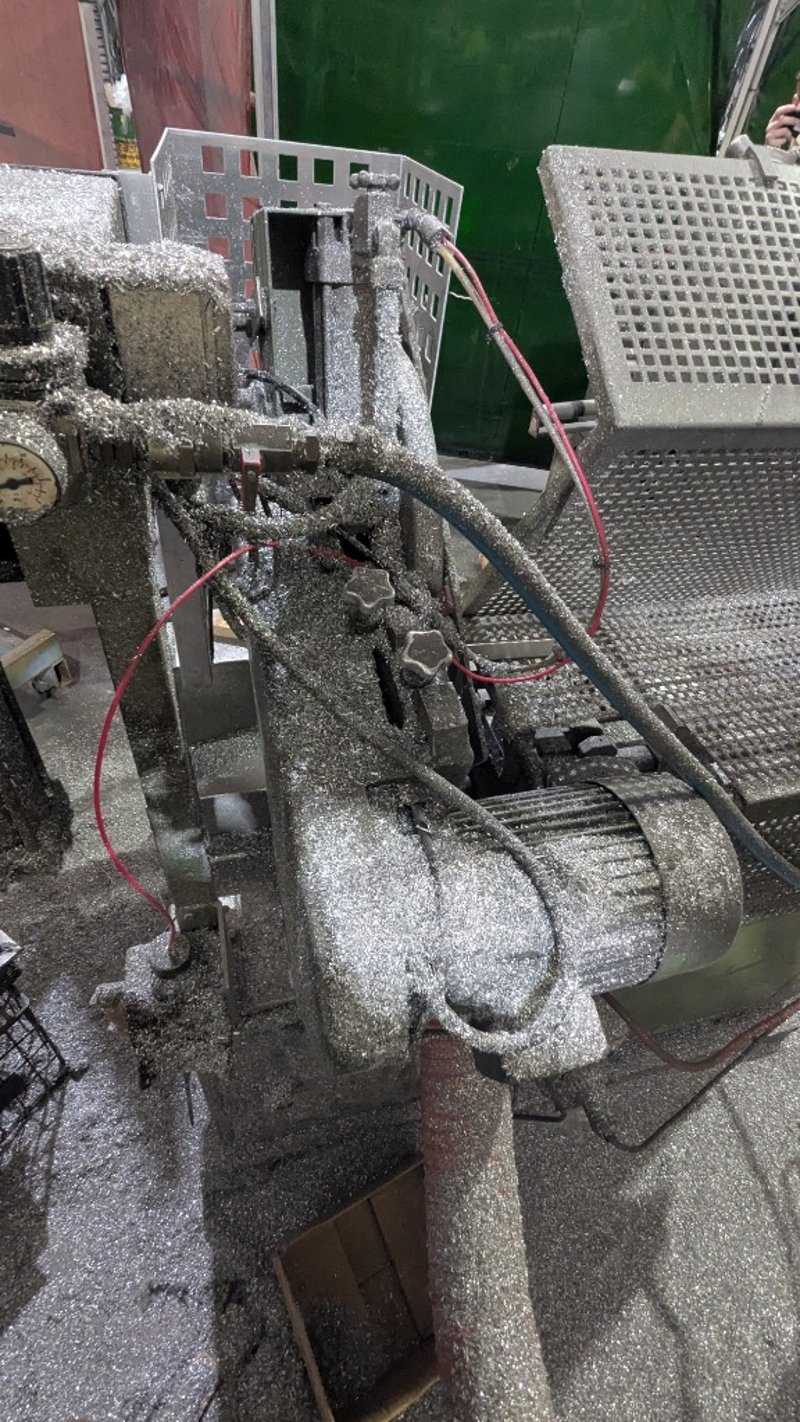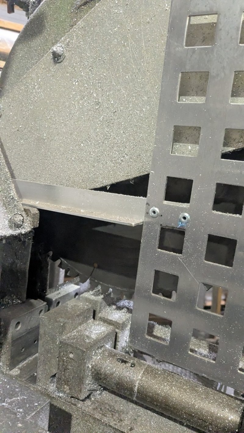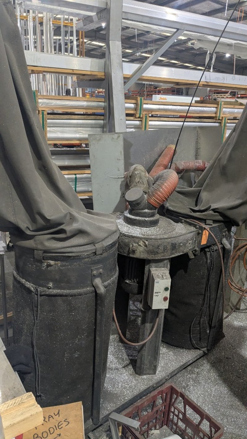 Metal Cut Off Saw, Model: Unsighted, Induction Motor Powered, Coolant System, 3 Phase Power, Protective Barriers, Vice, Variable Speed, Includes Dust Extractor System