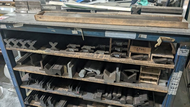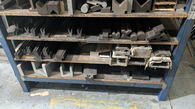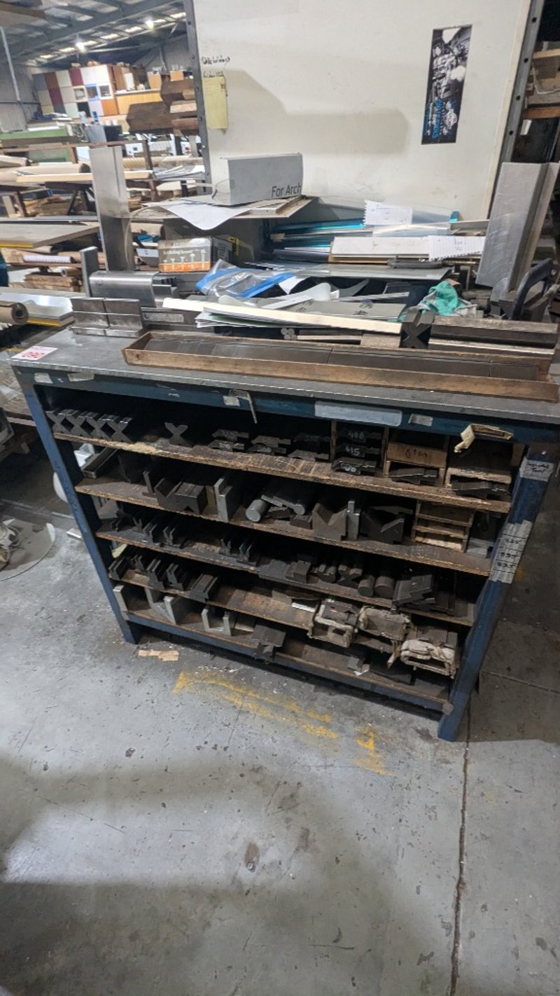 Metal Storage Rack, Chip Board Shelving, 5 Tier, Includes Assorted Metal Pieces and metal Dies, Quantity to Photos