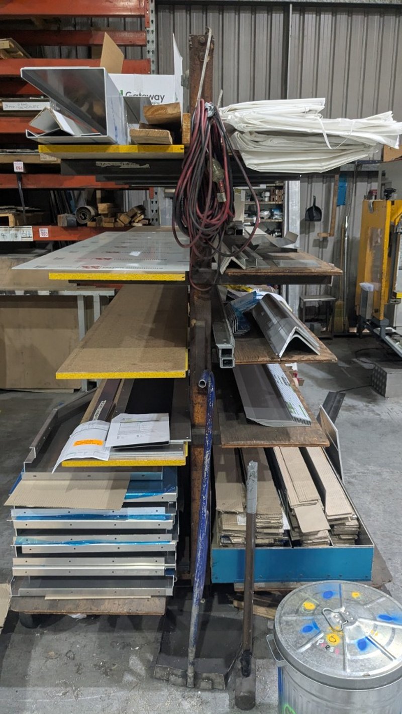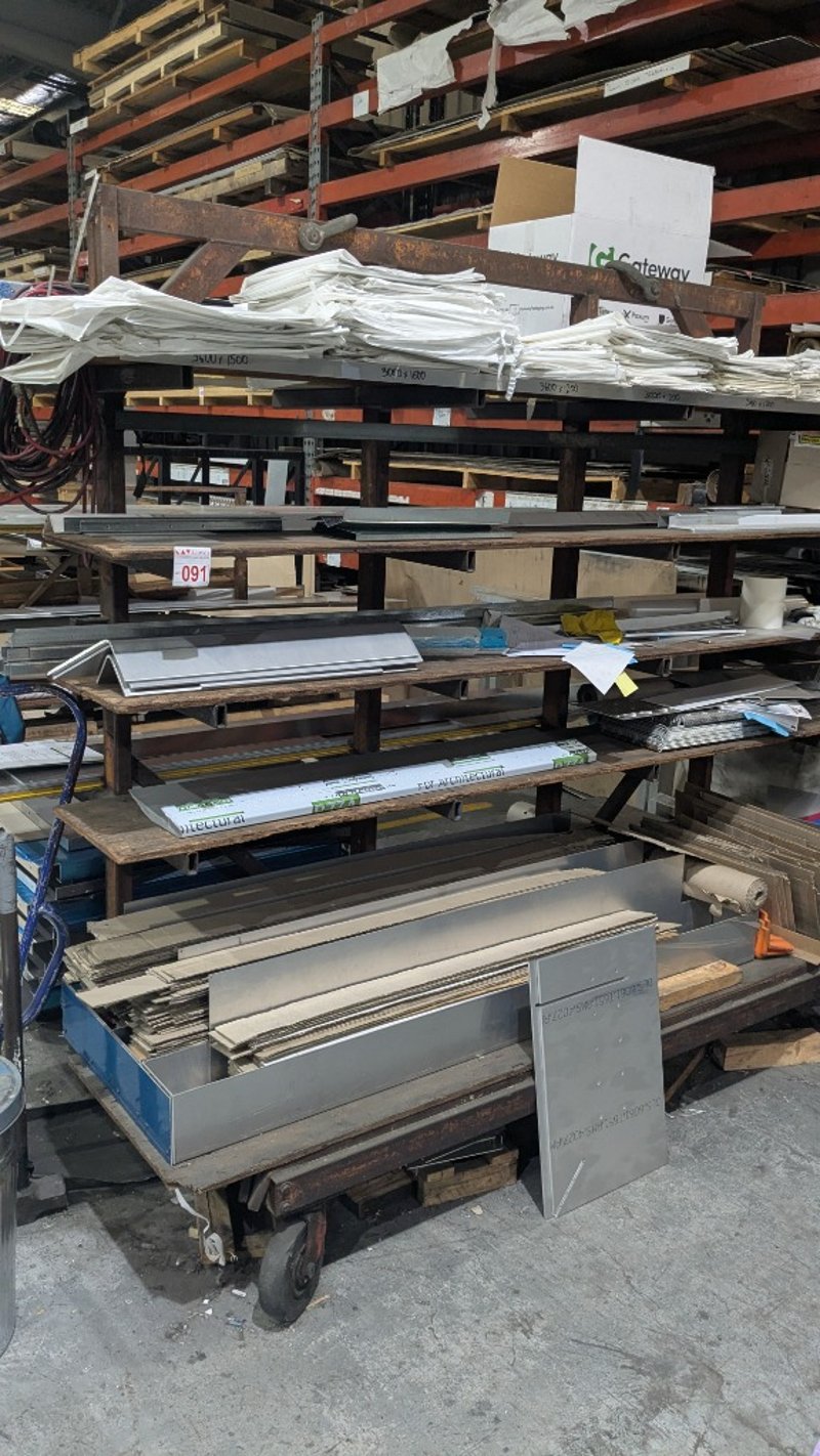 Cantilever Rack Trolley, 5 Tier Includes Aluminum Pieces, Various Sizes, Quantity to RackDimensions: 2450mm(W) x 1400mm(D) x 2150mm(H) SOLD AS LOT NOTE: INSPECTIONS HIGHLY RECOMMENDED, BUYER TO PROVIDE OWN LABOUR AND TOOLS FOR SAFE REMOVAL OF ASSET