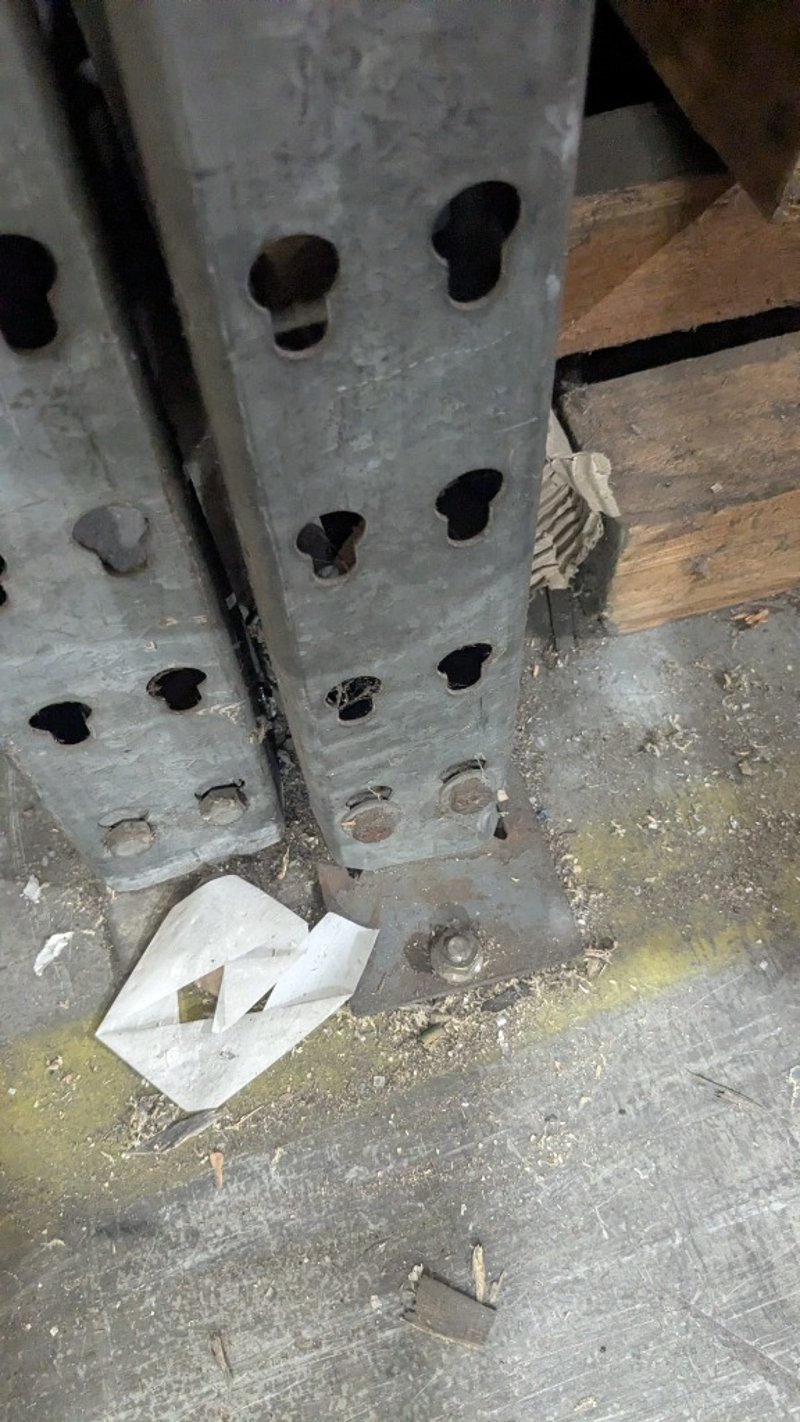 Pallet Racking, 6 x Uprights, 56 x Cross Beams, 3 Bays Dimensions: 4050mm(W) x 1000mm(D) x 4300mm(H) SOLD AS LOTNOTE: DELAYED COLLECTION, CONTENTS NOT INCLUDED, INSPECTIONS HIGHLY RECOMMENDED, BUYER TO PROVIDE OWN LABOUR AND TOOLS FOR SAFE REMOVAL OF ASSET