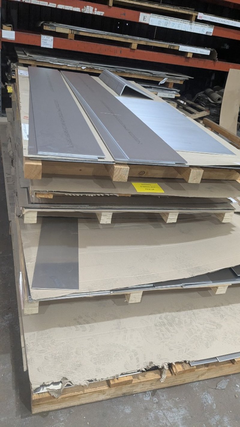 Assorted Metal Sheet, Various Sizes and Grades, Quantity to Stack SOLD AS LOT NOTE: INSPECTIONS HIGHLY RECOMMENDED, BUYER TO PROVIDE OWN LABOUR AND TOOLS FOR SAFE REMOVAL OF ASSET