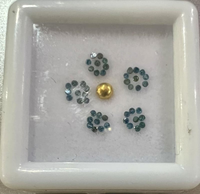 0.21 TCW BLUE DIAMOND VARIOUS HPHT PLUS 0.13 GRAM GOLD