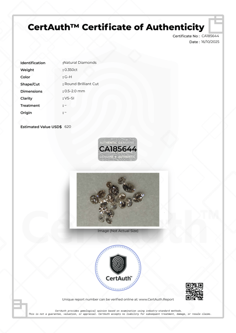 PARCEL OF NATURAL DIAMONDS – 0.35CT, CERTIFIED BY CERTAUTH