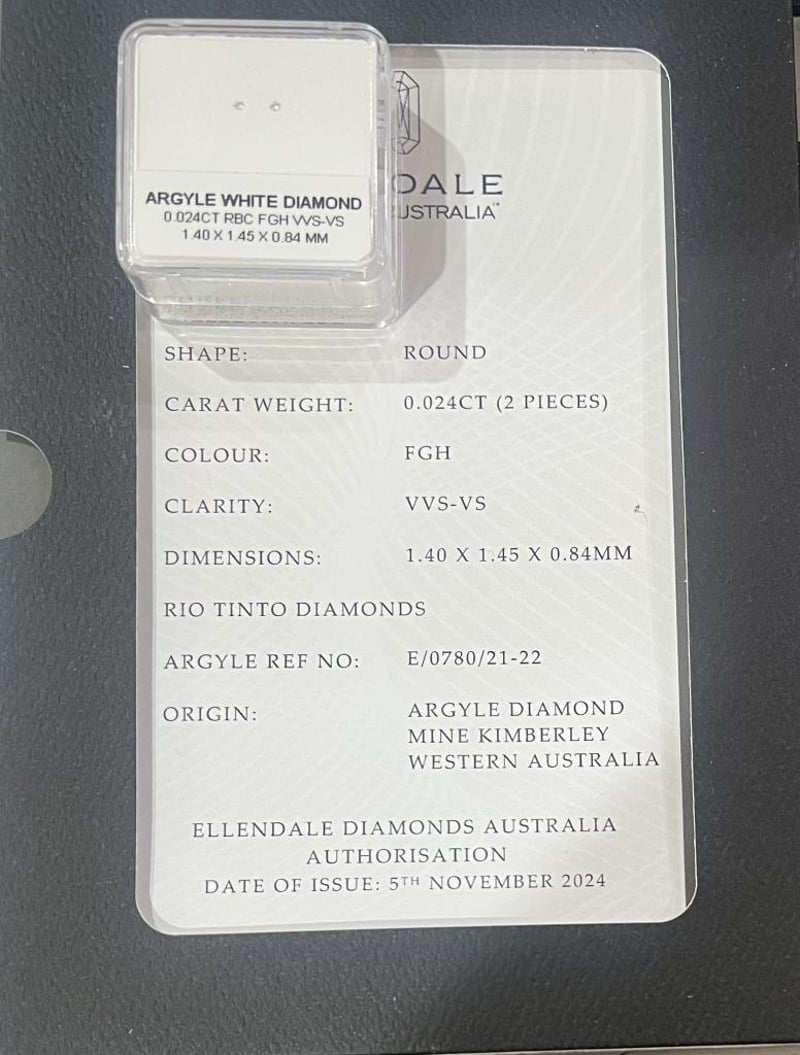 0.024 CARAT ARGYLE WHITE 2 DIAMOND CERTIFIED IN A BOX WITH CERTIFICATE OF AUTHENTICITY