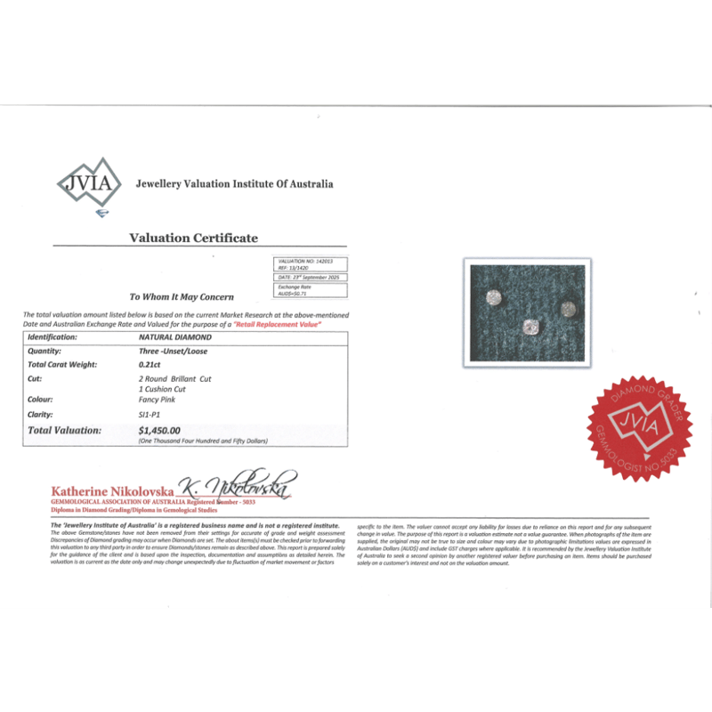 0.21CT TDW X 3, NATURAL PINK DIAMONDS