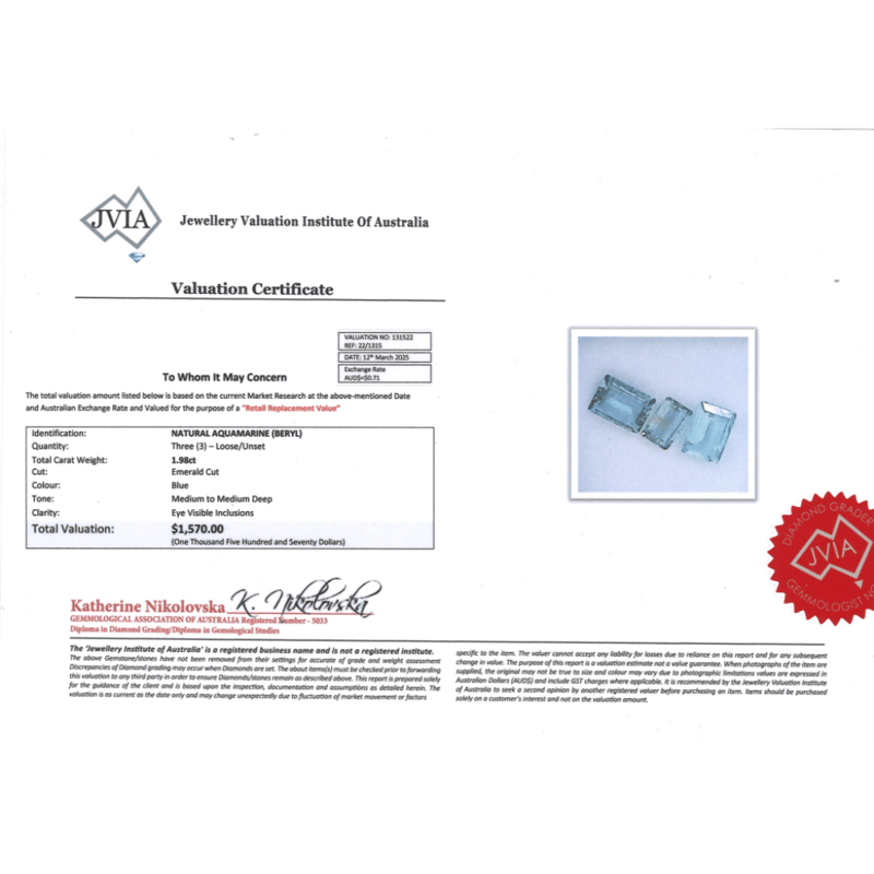 1.98CT TSW X 3, NATURAL BERYL AQUAMARINES
