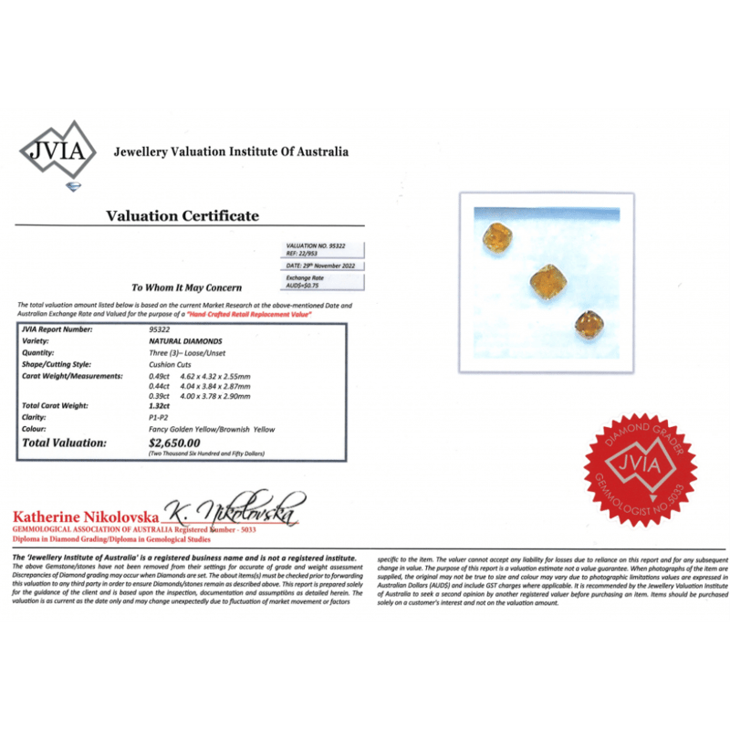1.32CT TDW X 3, NATURAL FANCY GOLDEN YELLOW DIAMONDS