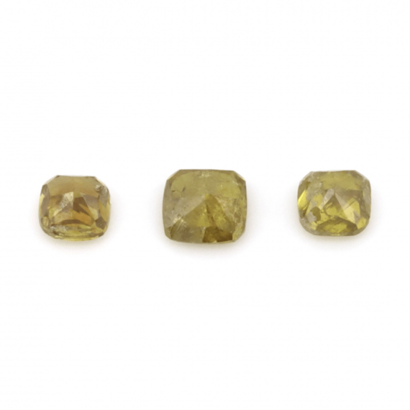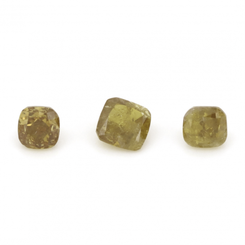 Cushion Cut, Fancy Golden Yellow/Brownish-Yellow, P1-P2 Clarity, Loose, Unset.