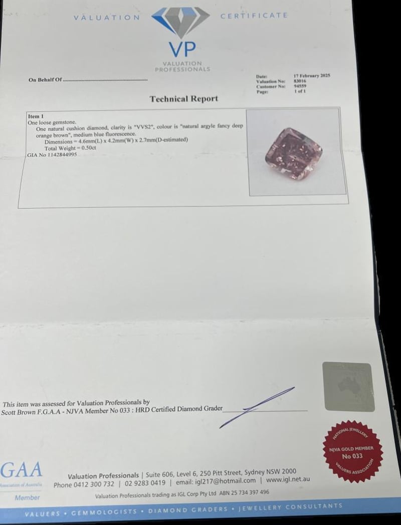 0.50 Carats Natural Fancy Deep Orange Brown Argyle Diamond-Rare Color....With Technical Report...Half Carat Is Very Scarce