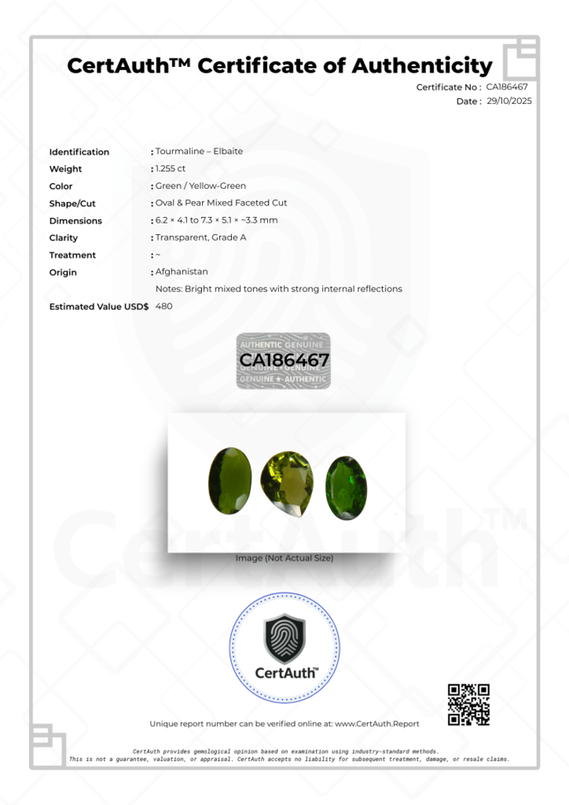 AFGHAN TOURMALINE PARCEL – 1.26CT TOTAL, CERTIFIED BY CERTAUTH™