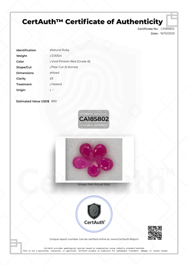 NATURAL RUBY PARCEL – 3.01CT, CERTIFIED BY CERTAUTH