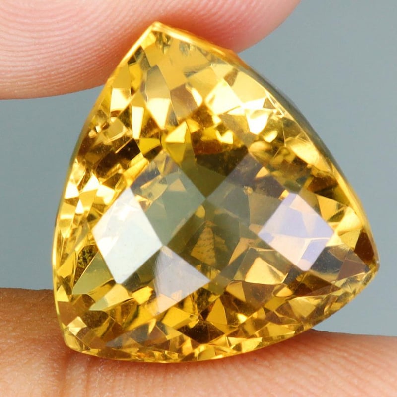 NATURAL 21.62CT TRILLION FACET CLEAN CITRINE Natural 21.62Ct Trillion Facet Clean Citrine Size 17.0 X 16.0 X 14.0 Mm. Note: Image Forms Part Of Description Condition: Good - Refer Images 0 488360+1