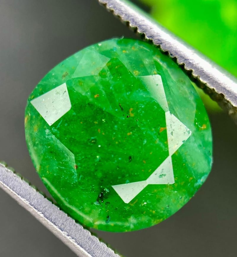3.45 CARATS NATURAL VIVID GREEN SEMI-TRANSPARENT EMERALD 3.45 Carats Natural Vivid Green Semi-Transparent EmeraldStone = Natural EmeraldWeight = 3.45 Carats Colour = Green Cut = Fancy Lustre = Excellent Treatment = No Oil (Natural)Transparency = Semi-Transparent Origin = Swat (Pakistan) Note = Precise Custom Cut (Not Commercial) 0+2