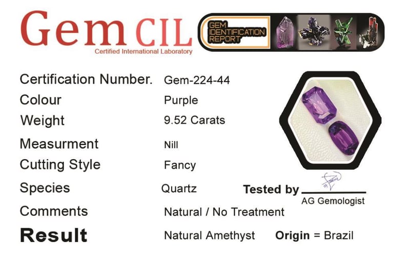 9.52 CARATS NATURAL QUALITY BRAZILIAN AMETHYST LOT 9.52 Carats Natural Quality Brazilian Amethyst LotStone = Natural AmethystWeight = 9.52 CaratsTreatment = Natural Colour = Purple Cut = Fancy Note = Gem Cil, Certified, Precise Custom Cut (Not Commercial) 0+44