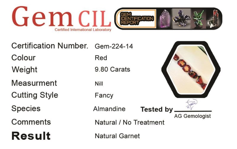 9.80 CARATS NATURAL SPLENDID ALMANDINE GARNET LOT 9.80 Carats Natural Splendid Almandine Garnet LotStone = Natural GarnetWeight = 9.80 Carats Colour = Pigeon BloodCut = FancyNote = Natural, No TreatmentLustre = Excellent Note = Gem Cil, Certified, Precise Custom Cut (Not Commercial) 0+14