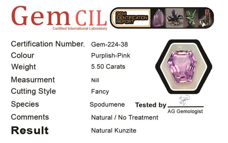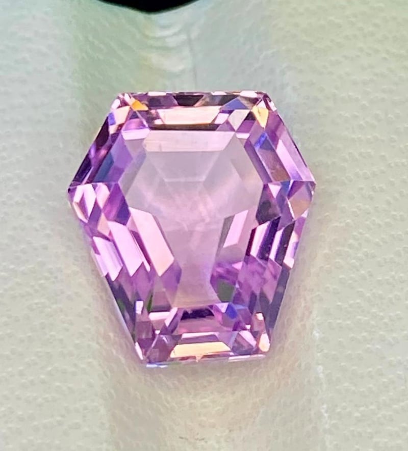 5.50 CARATS NATURAL QUALITY PURPLISH-PINK KUNZITE 5.50 Carats Natural Quality Purplish-Pink Kunzite Stone = Natural KunziteWeight = 5.50 Carats Colour = Purplish-PinkCut = Fancy Lustre = ExcellentNote = Gem Cil, Certified, Precise Custom Cut (Not Commercial) 0+38