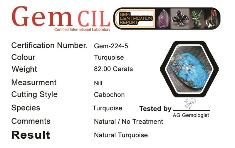 82.00 CARATS NATURAL QUALITY TURQUOISE 82.00 Carats Natural Quality Turquoise Stone = Natural TurquoiseWeight = 82.00 Carats Cut = Cabochon Colour = TurquoiseQuantity = 1Note = Gem Cil, Certified, 0+5